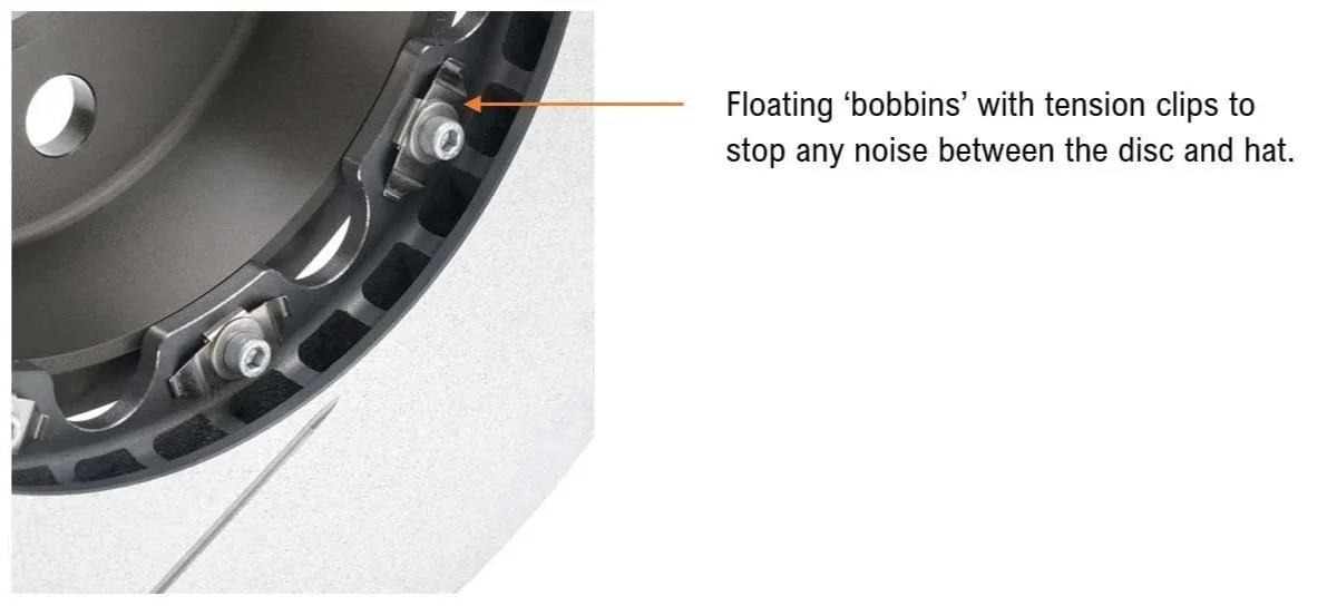 Enter the vented disc, which introduced internal vanes to improve cooling and increase structural stability. But the real game-changer came with the two-piece floating rotor. In this setup, the cast iron disc (or "friction ring") is bolted to a lightweight aluminium hat (or "bell") using a floating mechanism.